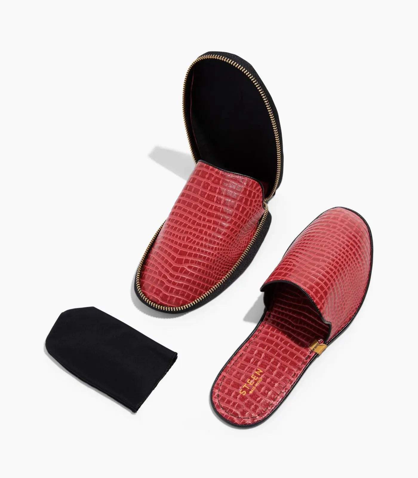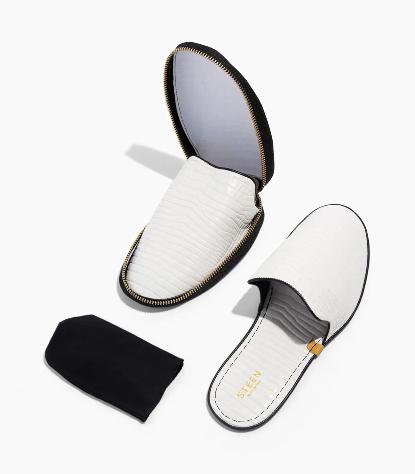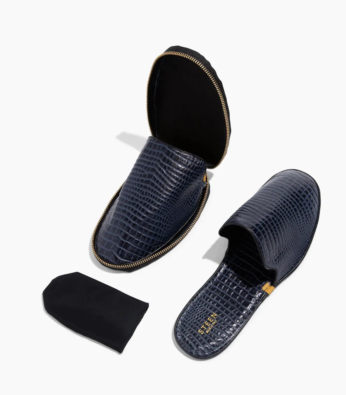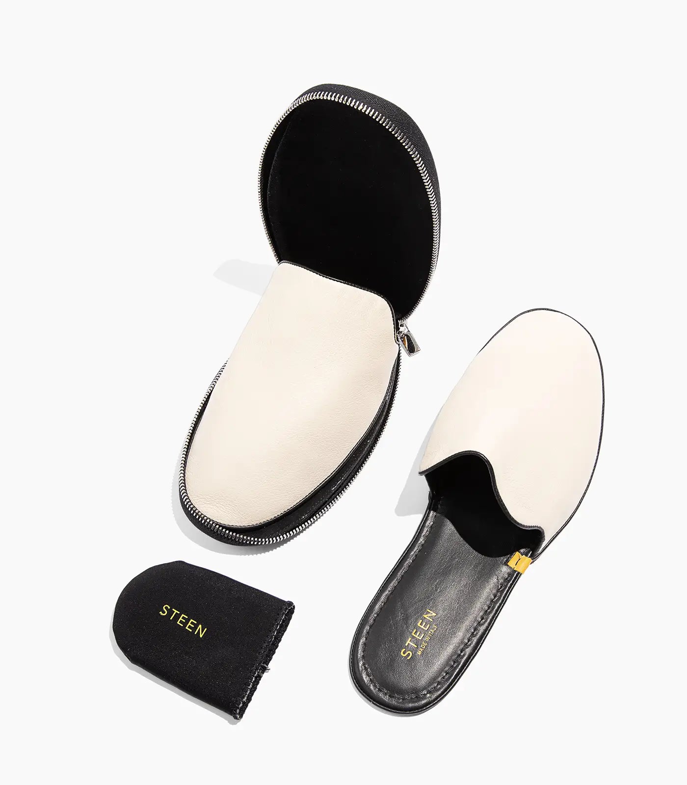 Øg din komfort med STEEN luksus foldbare travel slippers, designet til alsidighed og lethed hele dagen. Disse slippers er fremstillet af det fineste Nappa fuldnarvet fåreskind med en indvendig foring af gedeskind og har en blød, flad sål, der er velegnet til både hjem og rejser. Hvert par foldes pænt sammen til en smart, minimalistisk lynlåslomme for ubesværet transport og stil på farten.